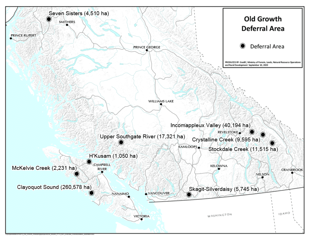 Areas set for deferral from logging in B.C.’s September 2020 announcement. Credit: Province of British Columbia