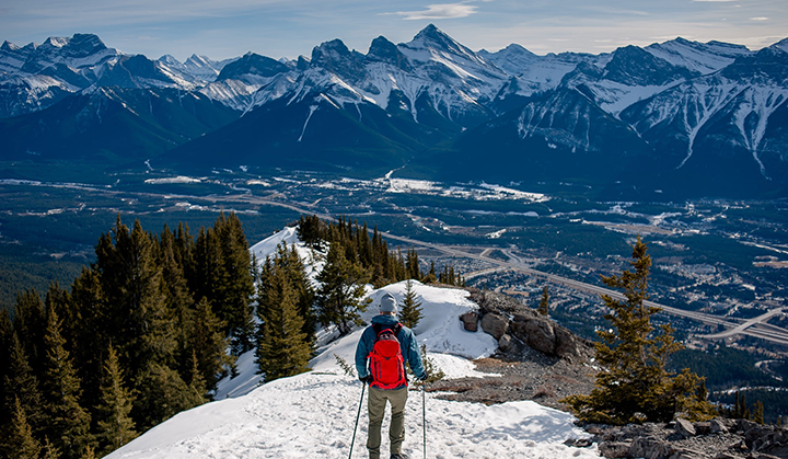 The trail up Mount Lady MacDonald, one of the most popular hikes in the Canadian Rockies, provides stunning views of the Bow River valley in Alberta.